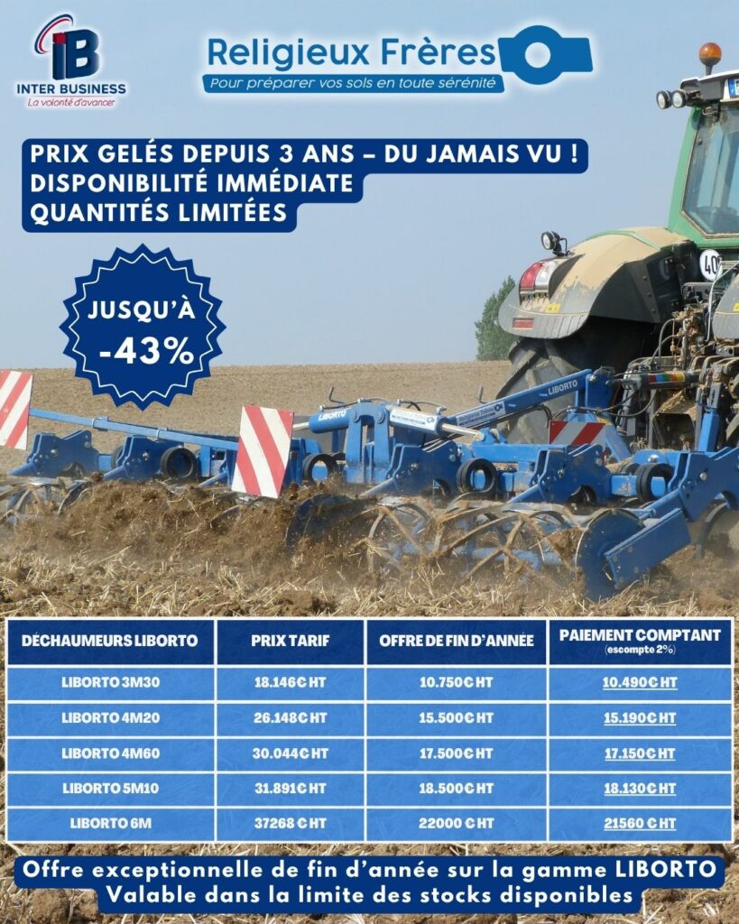 Les déchaumeurs LIBORTO – Religieux Frères sont disponibles avec une offre de fin d’année incroyable.